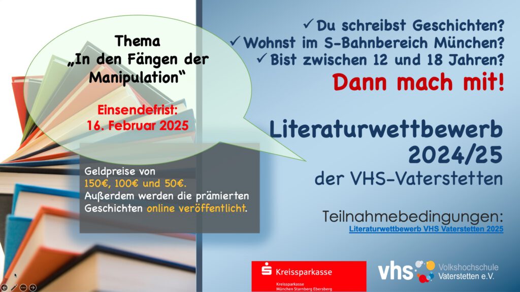 Der aktuelle Schreibwettbewerb der VHS Vaterstetten ist jetzt online! Siehe dazu auch hier: