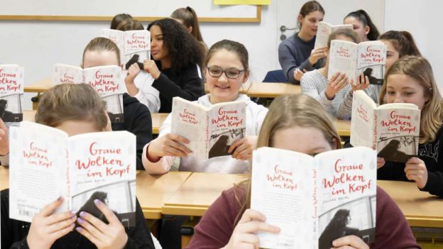 Bei so einem Bild, lacht natürlich das Herz einer Jugendbuchautorin. Ich hoffe, die Schülerinnen der Erdinger Mädchenrealschule „Heilig Blut“ hatten auch, trotz des schweren Themas, Genuss bei Ihrer Lektüre. Die Lesung mit ihnen war jedenfalls für mich eine ganz besondere Veranstaltung. Zum ersten Mal war meine Tochter Antonia mit dabei und hat den Mädchen viele Fragen zum Thema Depression quasi aus erster Hand beantworten können. Das war nicht nur sehr berührend, sondern auch so „easy going“, dass wir beide sofort wieder eine Graue-Wolken-Lesung als Mutter-Tochter-Gespann machen würden.